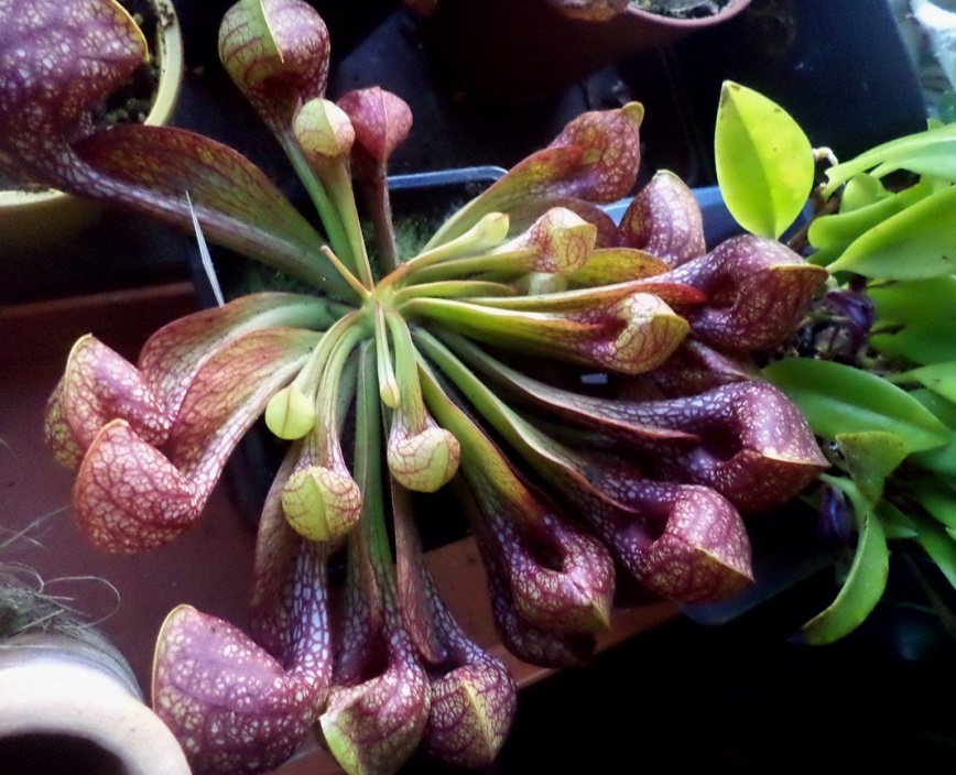 Hadi už půjdou spát.... Tak i Sarracenie mají poslední pěkné pastičky a půjdou do hajan.... ;) Mám doma jen malé druhy, jinak na Sarracenie nemám prostory, ale že jsem zatížená na ty hady - S.psitacina, S. psitacinaxrudolf a jedna mimo mísu S. leucophylla(chlupatý klon)...
