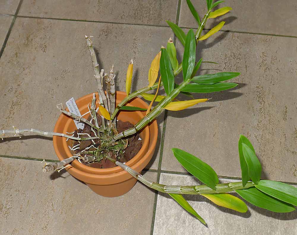 Ještě posílám snímek jak u Dendrobek abych je nemusel přesazovat tak používám větší keramický květináč a do něj vložím ten malý v kterém je rostlina zasazená. Mám vlastní zkušenost, že pokud jsou nádoby na rostliny zbytečně veliké tak rostlina hůře roste a snadněji přijde o kořeny. Navíc ten druhý květináč zajistí stabilitu a výhony se tak snadno o hranu nezlomí.
