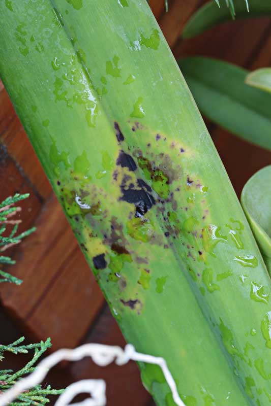 Katleje a laelie vypadaj zavirované podobně. Na květech se to vždy neukáže. Neříkám vyhodit, ale být opatrnější a sledovat. Fleky se dají "vypálit" kašičkou např. z kuprikolu, nebo championu, nanesenou štětečkem.