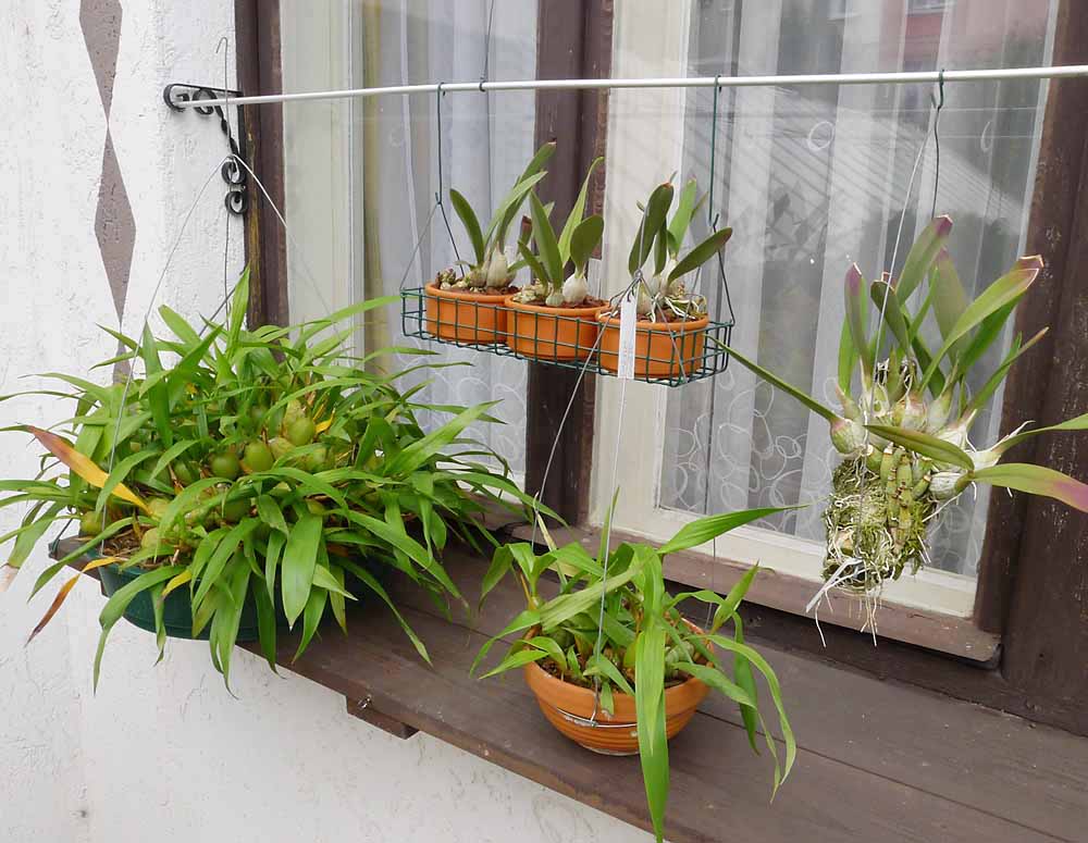 V rámci prodlouženého letnění Coelogyne cristata a Laelia speciosa jsem jim vybudoval jednoduché předokenní umístění kam neprší a kde je nefiltrované světlo. Snad je to přiměje k nasazení na květ. Jde zejména o tu speciosu o jejíž kvetení bych se nerad ochudil.