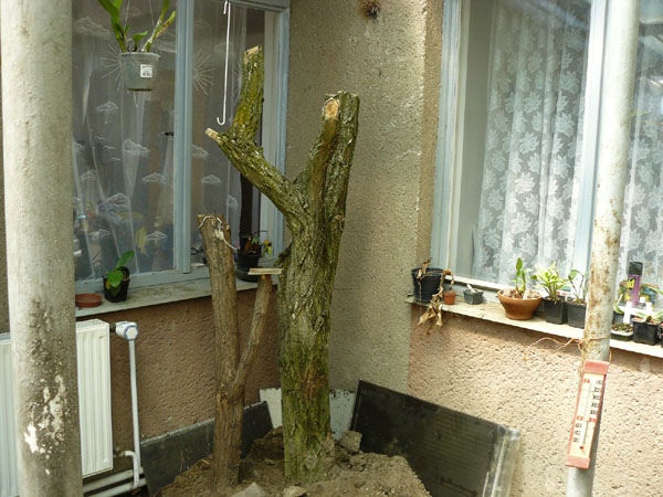 Tak letos už musela být generálka. Přece jen akátové kmeny od roku 1980 už opravdu začaly odcházet a navíc bylo potřeba poněkud poopravit rozmístění, protože přibývající léta vyžadují snadnější přístup k rostlinám . Talže jsem si hrál tři dny ve 40°C ale je to hotové. Začal jsem bouráním.