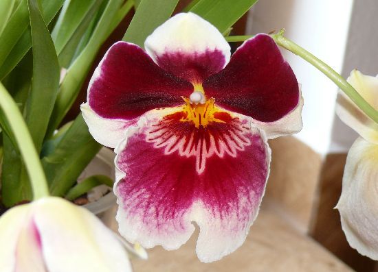 Tak se musím taky pochlubit, nakvetl mi miltoniopsis, na čtyřech stvolech, sice jen po 2-3 květech na stonku, ale zaplaťpánbu za ty dary