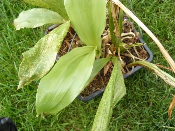 Léčba přípravkem Altron Silver. Asi v březnu jsem narazil na informace ohledně nového přípravku Altron Silver. Nebudu rozebírat jak. Do té doby jsem stříkal koloidním stříbrem. Rok 2009 byl velice příznivý pro vznik bakterióz, houbových chorob a hnilob ve volné přírodě, což mělo za následek rozšíření i do skleníků. Koloidní stříbro dokázalo tyto choroby pozastavit. Po objevení nového přípravku jsem kontaktoval majitele firmy Ing.Rokose s prosbou, zda by nemohl pro zkoušku zaslat vzorek nového přípravku Altron Silver, který mimo jiné také obsahoval stříbro. Ing Rokos velmi ochotně vyhověl a osobně dovezl dva vzorky. Dohodli jsme se na tom, že průběh používání budu dokumentovat a fota průběžně zasílat do jeho firmy. Přípravek byl původně určen pro zemědělství a prodával se ve velkém balení. Odhodlal jsem se odzkoušet jej i na okrasných rostlinách de facto na orchidejích. Výsledky jsou jednoznačné z přiložených foto.