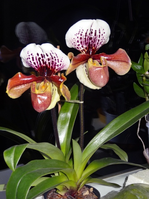 A ještě jeden, tohle paphiopedilum mi kvete z jednoho stvolu dvěma obrovskými květy