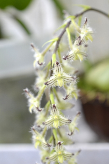 Dendrochillum jsem kdysi dostala od Martičky a je to velmi vitální rostlina. teď kvete třemi stvoly. Tak ještě jednou, Marti, děkuji :D