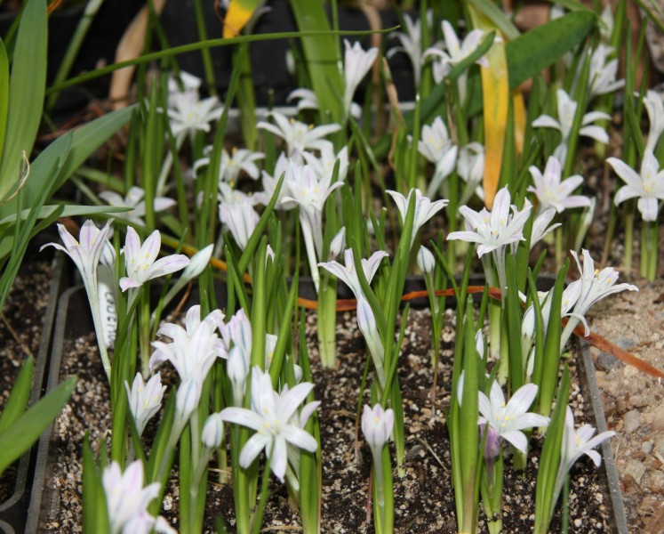 Z jihoevropských jsou tu obligátní bramboříky a sternbergie; u těch jsem si letos vedle sebe dal květináče dvou druhů a nějaký rozdíl tam je, ale vůbec se nedivím, že zrovna tyhle dva taxony byly nedávno sloučeny do jediného (ještě spolu se S. greuteriana).