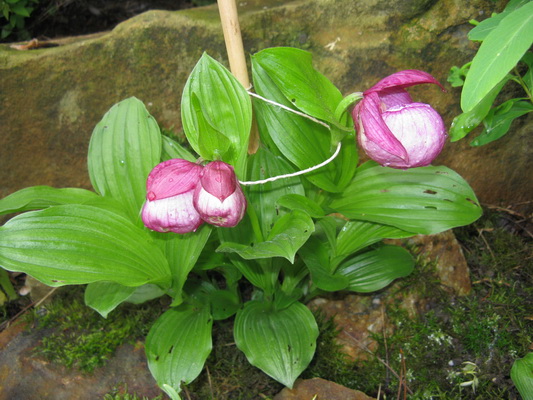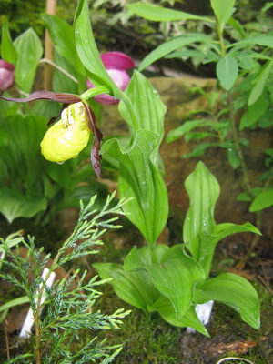 Mám zahradu plnou rostlin a v posledních letech začínají vyhrávat chladnomilné orchideje. Posílám něco ze zahrádky focené včera dopoledne. Počasí je poslední dny šílené, slimáci pomalu ale jistě začínají zdolávat veškeré "bariéry". Je to jak naschvál, že zrovna cypripedia jim tak chutnají... Petr