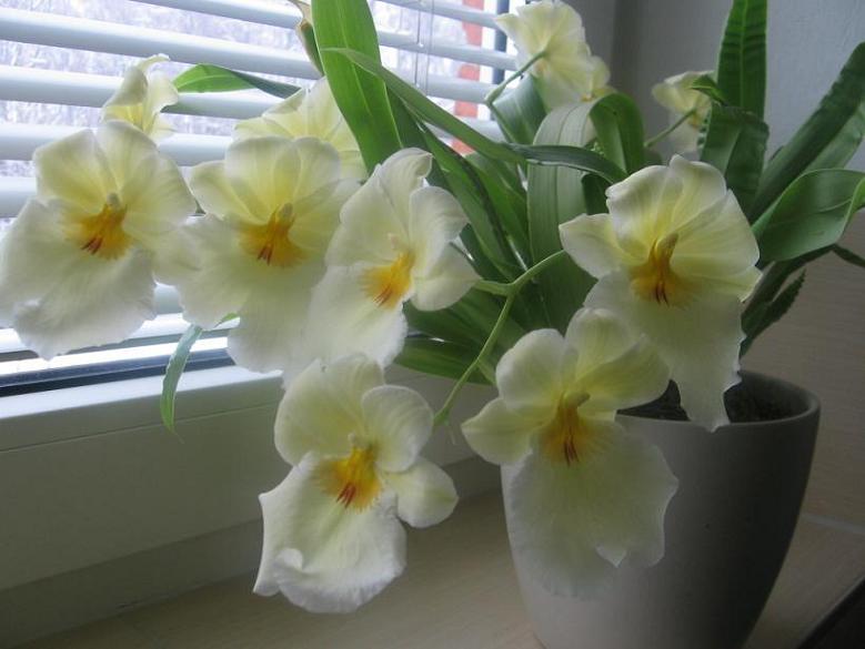 vykvetlo mi pět stvolů, to opravdu potěší (dva stvoly jsem malinko ustřihla žaluzií), jemná květinová vůně připomínající mně vůni petrklíčů a vanilková barva