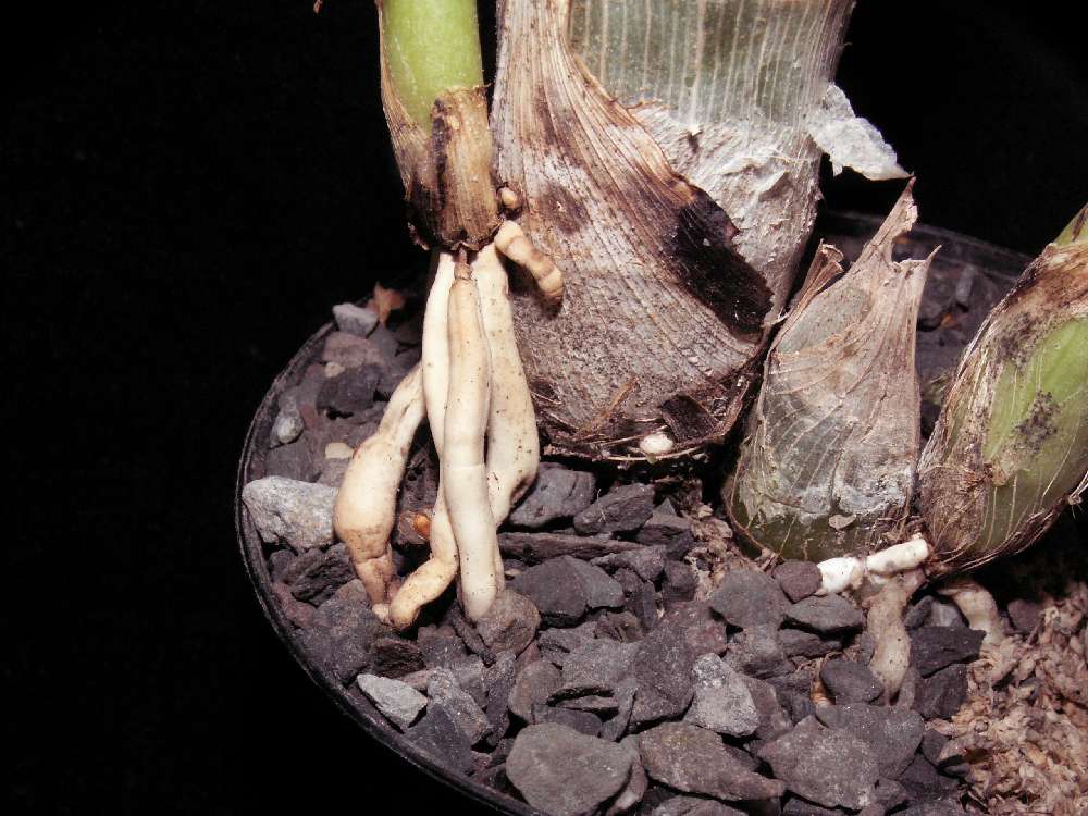 už jsem to psal minulý týden : Měl jste úplnou pravdu, to co bylo na fotce jako zdravé hořeny prorůstalo skrze bal nefunkčních kořenu. Kytka byla v květináči 4 cm a někdo ji přesadil do většiho a původní bal obložil mechem a nahoru nasypal ty šedé kamínky. Takže se mi to rozpadlo na čtyři kusy . Zaprášil jsem to dřevěným uhlím a dal do tepla. Uvidíme.