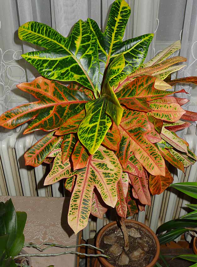Nyní na podzim se krásně vybarvil Kroton.