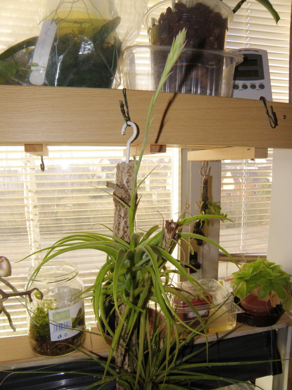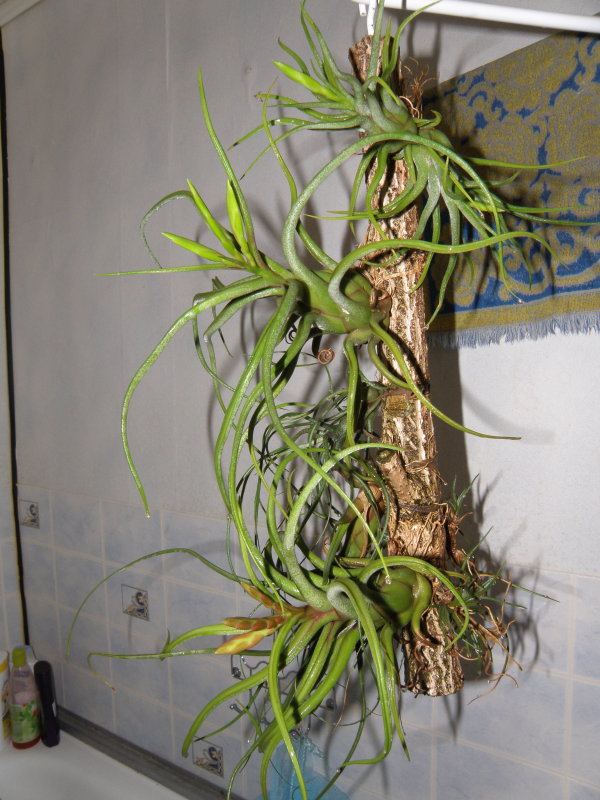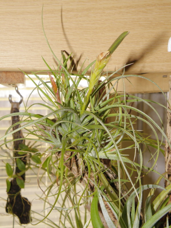 č.1 - Tillandsia caput-medusae....budou kvést všechny 4 exempláře co mám, z čehož moc nemám radost, protože ty dvě odnože nahoře ještě nejsou zdaleka dospělé. Ale ty dvě starší pokvetou poprvé, jsou silné, květenství by mohlo být bohaté.Jelikož jde o navzájem nepříbuzné rostliny, mohlo by se podařit i opylení.