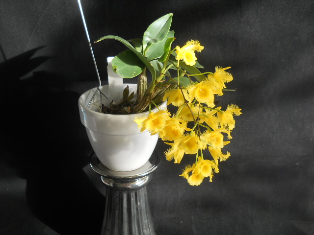 U mě nyní plně rozkvetlo Dendrobium bellatulum s oranžovým pyskem. Tahle forma mne fakt bere. Doufám že rychle poroste aby udělalo větší trs.