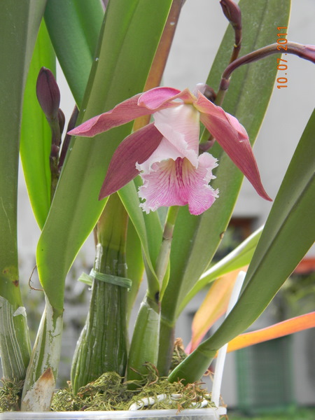 rozkvétá kříženec Encyclia phoenicea x Rhyncholaelia digbyana var. fimbripetala. Pokvete ze dvou pahlíz, poupat je ještě pět :P