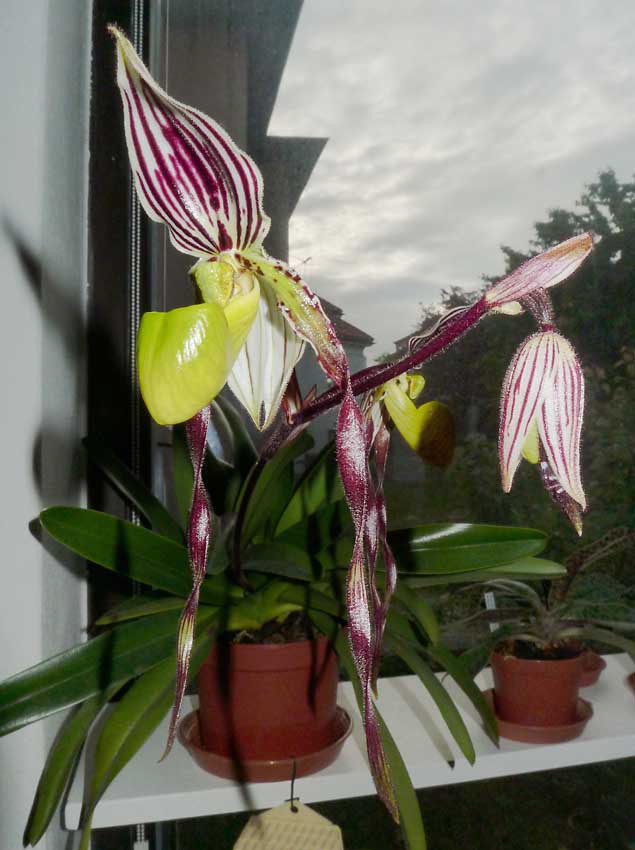 Právě mi rozkvetlo Paphiopedilum philippinense. Je to další střevíčník který mne zaujal.