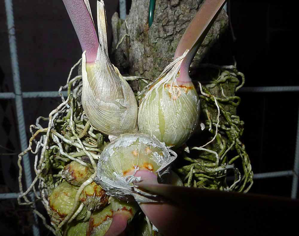 Rozhodující bude letošek, do jaké míry rostliny nasadí na květ. Třeba ten velký trs rozjíždí 5 výhonů a pahlízy má stejné. Stále nevím jestli se dá podle průřezu poznat jestli v nich budou květy, ale připadá mi že ano. To bych viděl jako úspěch. Přitom tam byly květy 14 dní a i semeník se vyvíjel. Rostlinu nic neoslabilo protože je roky zakořeněná na větvi. U těch třech vzorků z Mex. ale kvetení způsobilo, že nové pahlízy jsou o poznání menší než ty loňské. Jsou to ale rostliny které byly pouze jeden rok přikořeněné a tak měly málo kořenů. Po loňské sezoně mají ale kořenů 3x tolik. Tak snad již budou dostatečně silné aby je kvetení neoslabilo. Někde jsem četl že L. speciosa v kultuře kvete většinou ob rok, pokud tedy kvete. Bude to mít asi souvislost s tím vysílením kvetením. Takže pokud letos nenasadí tak do příště zesílí sama. Pokud nasadí tak budu pozorovat vývoj nového výhonu a pak podle jeho síly zvolím dobu kdy květ odstřihnu.Paphio píše:Tomu se dá do značné míry odpomoci odříznutím vyzrálého květu. Nějakou cizí ženu by určitě potěšil.zaruba píše:Rostlinu hodně vysiluje kvetení takže po květech pahlízy narůstají o poznání menší než na místech kde rostlina nekvetla. To ale je tak asi u většiny orchidejí.Paphio píše:.