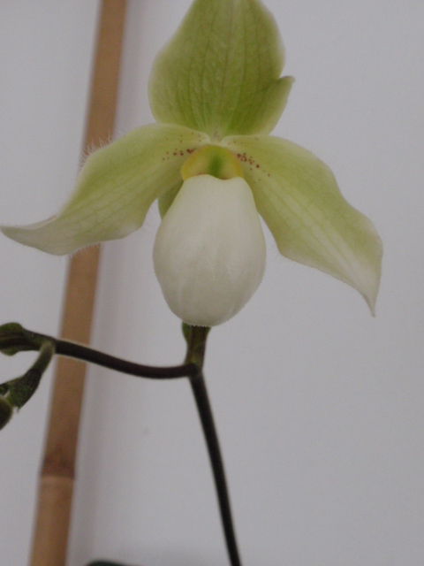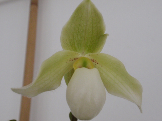 Tyhle tyče jsou tedy z OBI, umístěný je to v zimní zahradě-tedy ale takový trochu jako místnost, ne klasika-na stěně na západ. No a když jsou ty tyče silnější, spojený hřebíčkem, omotaný provázkem, nahože připevněný do zdi, tak se to ani nehne. Ale na zahradě mám teď druhým rokem taky zasazený bambus, tak doufám, že budu taky sklízet. A dnes konečně rozkvetl naplno pantoflík, není úplně bílý, ale je fešák.