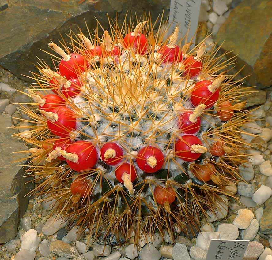 Červeně kvetoucí Mammillaria senilis je krásnější než ta bíle kvetoucí. Bílá je ale vzácnější a i hůře pěstovatelná.