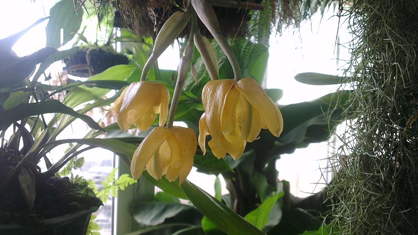 Tady je jedna z mojich posledních rozkvetlých rostlin. Tentokrát je to hybryd Stanhopea x fowlieana . Květ žlutý, drobnější, otevřený né z cela jako některé ostatní Stanhopee. Mimořádně krásně voní po pomerančíchTeta píše:..á...super, další "hruštičky" v očekávání....