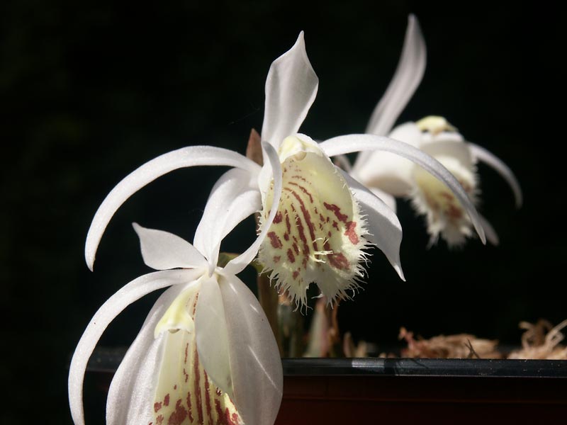 Kvůli drsné zimě a časnému jaru se všechno tak o měsíc až dva zpozdilo. Ještě dokvétají Pleione humilis, které běžně kvetou v únoru. No a díky vedrům to zase rychle odkvete, takže letošní sezona bude krátká.