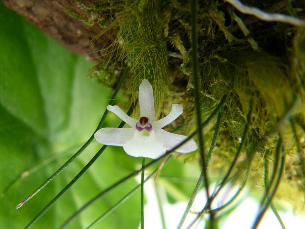 Nedávno mi kvetla tato zajímavá rostlinka. Málokdo by asi hádal, že tenhle mrňous je příbuzný velkokvětým katlejím. Nejzajímavější je na ní asi její habitus. Neznám jinou orchidej, co by nosila takovouhle "punčošku". Za kvalitu fota se omlouvám, ale komu není shůry dáno...
