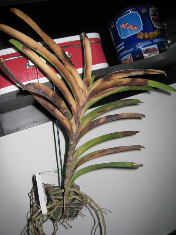 Nezděste se, první foto je vanda upečená mými chlapy během mého pobytu v nemocnici, druhá je focená dnes: 2x týdně mi ji ted musí koupat přes noc ve vodě odčerpané z akvária. Nevím ještě, vydrží li a jak dlouho se bude zotavovat, ale je to bojovnice, jedno je jisté, zatím to nevzadala, žije.