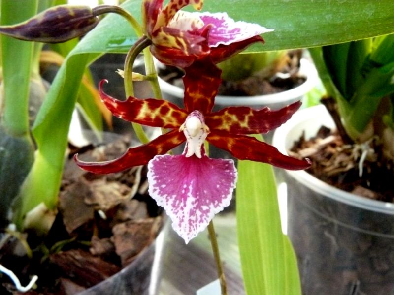 Degamoara Stars and Bars Flying High HCC/AOS. Velice hezký kříženec s květy o průměru 10cm. Na latě jich bude až zcela rozkvete osm. Těším se na celou latu.