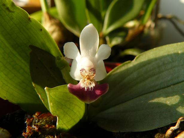 Skoro jsem přehlédl, že vykvetl tenhle drobeček. Přišel loni takový chudáček ještě s Phal. lobbii, který to bohužel již nerozdýchal. Ani mne nenapadlo, že by vykvetl, ale jak vidno se snaží. Těmto drobným faleňáčkům se dobře daří na kůře a ve vitrině vypadají velmi hezky (i když já ho pěstuju v květináčku na parapetu).