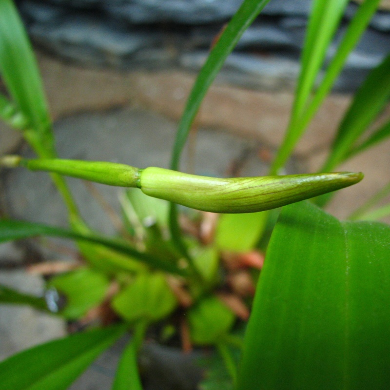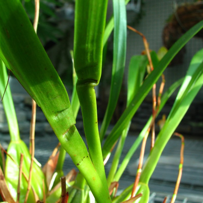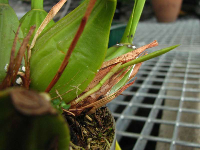 Koncem roku 09 jsem od p.Kláta dostala Trigonidium egertonianum je to kytička s podivně zvláštním květem -přesně pro mne. Ve skleníku roste dobře ,přes zimu vyzrály pahlízky ,listy už se neskládají do tzv. harmoniky(díky vyšší vlhkosti )Pohoda. I jsem vychytala zálivku- na nadměrnou zálivku je Trigonidium docela háklivý(hned to chytilo houbu-některý listy pak odpadly) -možná i díky složení substrátu v kterém ještě stále je. Dám k porovnání dvě fotky z roku 09 a současné foto. Kytička vyhání jeden květní stvol.Na fotce z r. 09 je vidět několik odkvetlých květních stvolu. Otázka zní proč mě to ta potvora udělala? Nebo květní výhony porostou postupně. Prostě jeden kvítek je málo .