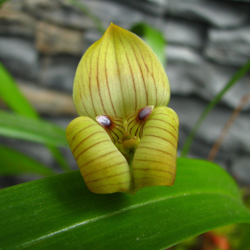 Barbez2- já děkuju za tuhle fotku. Ta tvoje kytička zřejmě vypovídá o prostředí kde byla pěstovaná? Podle Radzaka ten delší rhizom je nedostatek světla (na kůře díky zálivce je i menší.)Je sice stínomilnější ,ale protože jsem ji neměla kam dát ve skleníku u mě má místo těsně pod makrolonem,kde je světla habaděj.Na skleníku je stínovka. Je ta kytička ze skleníku? Další věc -v bytě (nevím jestli každému) vytváří list tzv.harmoniku .Teorii "nepravidelné zálivky" jsem nikdy nepochopila co je tím myšleno. Přesně vím ,že pobyt ve vyšší vlhkosti u Trigonidia harmoniky nedělá.Foto-takto rostl list v bytě.Už vím také-nakvétá docela ochotně.