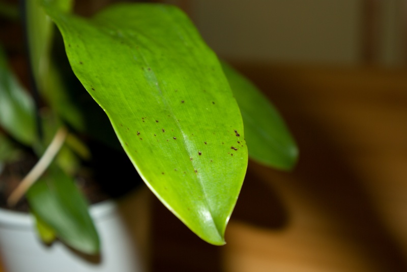 Dobrý den, potřebovala bych poradit. Koupila jsem si novou orchidej a zjistila jsem, že má na listech drobné černo-hnědé tečky (jsou vyfocené na fotkách v příloze). Také ji vyrůstá nový list, který je celý lepkavý.. Mohli byste mi prosím někdo poradit, co to je a co se s tím dá dělat?