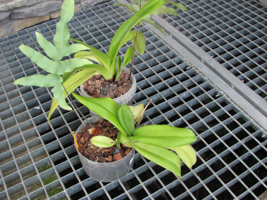 Jo jo je to OBI kytka . V jedné sekci ZZ mám větve s Láčkovkama . Je to doplněno orchidkama hlavně Dendrobka. No a aby na zemi pod tím něco bylo tak jsem tam nasypal kůru a mám v tom schované nádoby s těma Pafíkama a je tam i jedna Calanthe rosea. Kapradiny mám přímo v té kůře a rostou. První Pafík rostl a kvetl ,tak se koupil další a pak další............