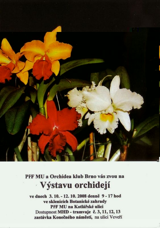 Dovoluji si Vás tímto pozvat na výstavu orchidejí , která se bude konat v Brně v termínu od 3.10 do 12.10 2008. Otevřeno denně 9 - 17 hod. Podrobnosti na přiloženém plakátku. Cattleya