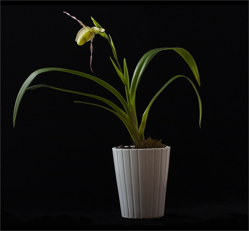 Dávám pohled celkový,květ se otevírá zajímavě,ventrální sepal byl původně zcela nahoře (viz. fotka ve vlákně "fotky podle nálady").Postupně,jak se květ uvolňuje z pouzdra,tak se otáčí o 180 st.Opravdu to připomíná manévry letadla... :mrgreen: