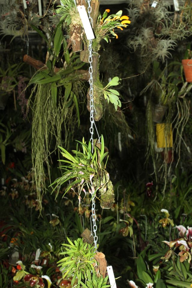 Před pár dny jsem viděl v arboretu zajímavé zavěšení rostlin na pozinkovaný řetízek. Nápad je to velice zajímavý a hned jsem jej vyzkoušel. Má to několik výhod . Řetízek můžete přemísťovat jak se vám to právě hodí. Vejde se na něj hodně rostlin. Můžete jim při mlžení rostlin otáčet. Pokud vám vadí otáčení můžete řetízek zavěsit na obou stranách. Stane se tak směrově pevnější.