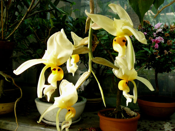Tak už rozkvetla. Rostlina ale patří mezi vzrůstnější Stanhopey. Výška cca 40 cm.