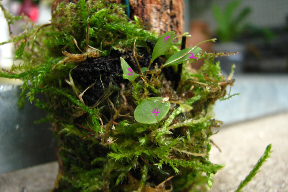 Lepanthes jsem koupila u Ecuanegery v r.2011 měl 4 listečky. Foto .Netuším jestli se to mohlo pomíchat. Platystele umbellata má Ecuanegera také v nabídce. Ale co by pak znamenaly ty odpadlé kousky na mechu-foto ?