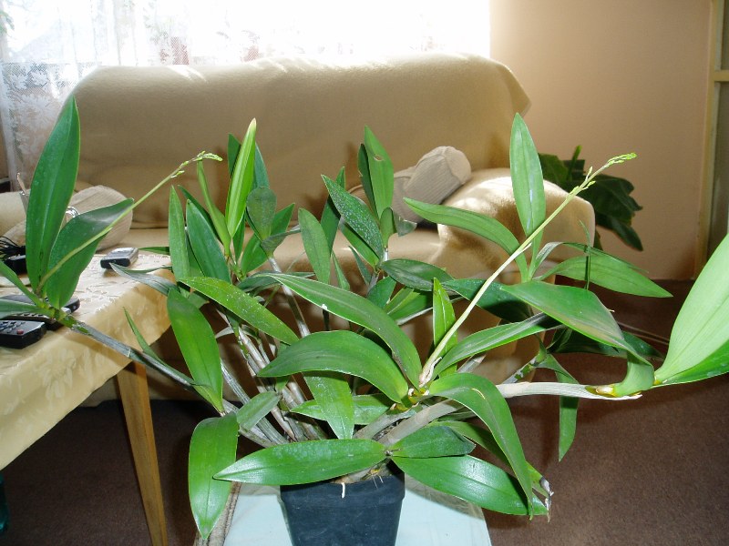 Je chladnomilné. Já vlastně mám skoro všechny orchideje chladnomilné, protože v tom našem bytečku neudržím zrovna dvakrát teplo, třeba na takovou vandu. Jinak tohle je už docela rostlá kytka, možná, že se pokusím ji trochu rozdělit, ale nějak zvlášť mi nedělá na špičkách nové rostliny, jako je to u těhle dendrobií normální, vlastně ještě vůbec mi neudělala nové rostliny na pahlíze, vždy jen pěkně odspoda.