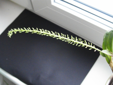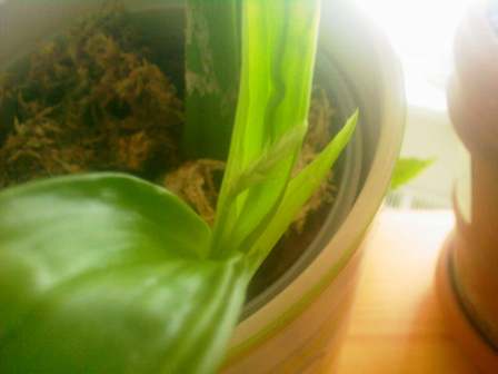 Ještě fotečky taky květního prcka , který si dává na čas pořád se květní stvol vytahuje ,ale nevykvétá , tak snad se taky dočkám, asi by chtěl přitopit. :) Na první jak začínal růst a na druhé jak se vytáhl