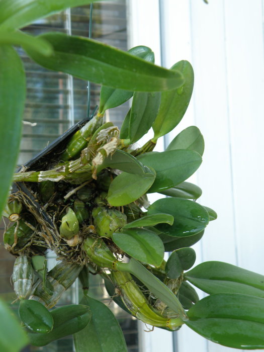S tím D.lindleyi je to trochu zvláštní, už od června, co jsem ho koupil a oprostil z toho košíku, postupně opadaly asi čtyři listy u příslušných pahlíz, které zhnědly až zežloutly a nadměrně se svrckly(viz foto)....všechny ostatní okolo se zdají být v pořádku....ale jak jsem už napsal, vše pahlízky jsou bez kořenů. Nevím zda-li se pokouším o správnou věc tím, že se snažím jej stimulovat k růstu nových kořenů zvýšenou okolní vlhkostí . Mohou vůbec starým pahlízám znovu vyrůst nové kořínky ? Jaká je vaše zkušenost?